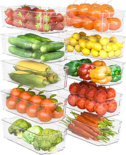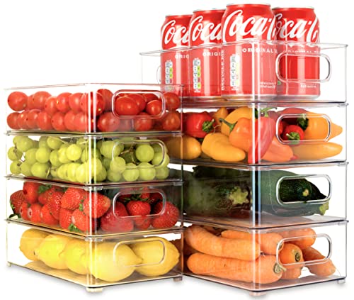 KICHLY Stackable Fridge Organisers - Set of 10 Storage Containers with Handles - Multipurpose Organizer Boxes For Kitchen, Fridge, Cupboard, Snacks, Cans, Tins, Pantry, Under Sink - BPA Free (Clear)
