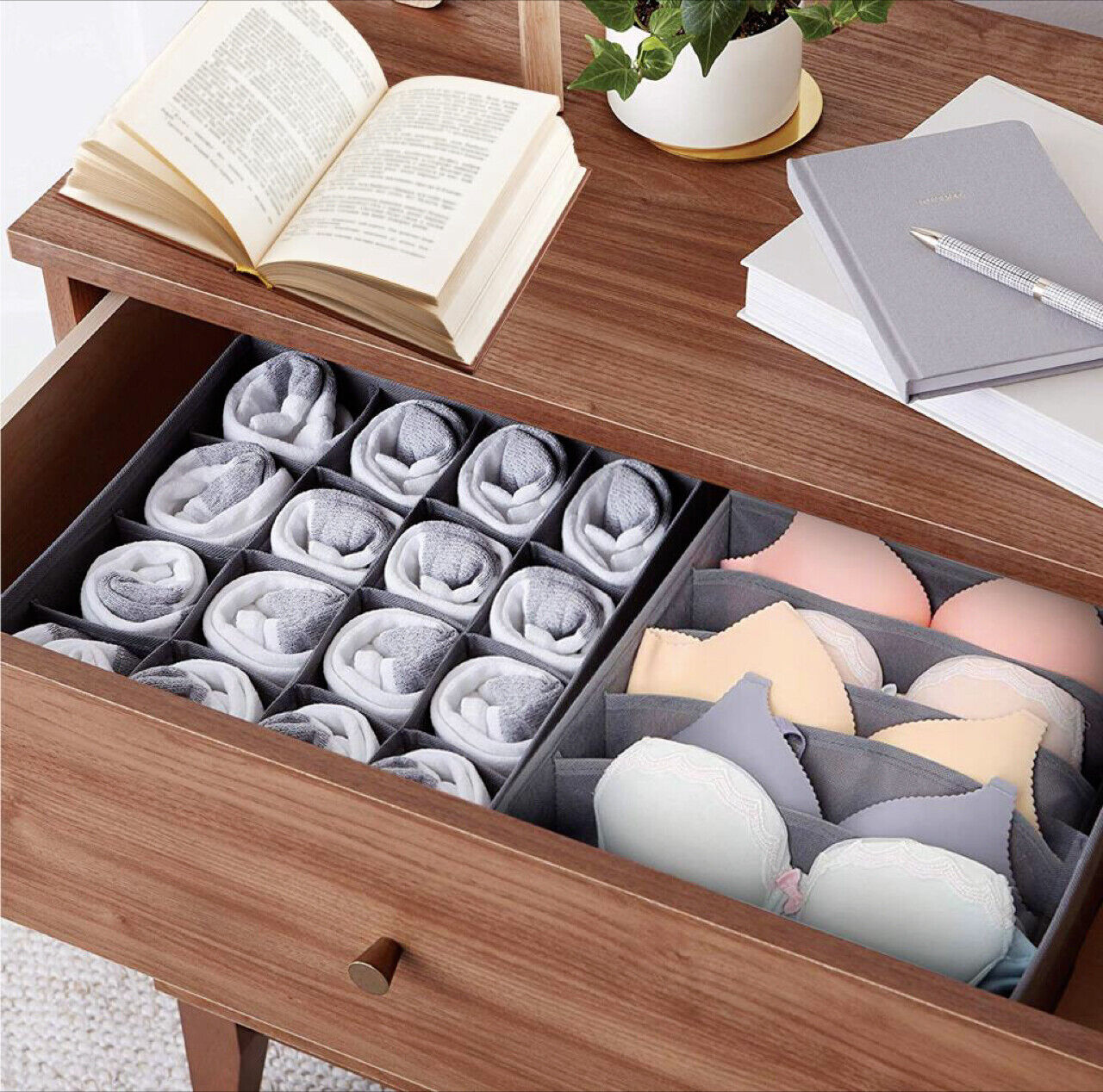 3 X Drawer Organisers for Bras Socks Ties Underwear Scarves Wardrobe Cupboard
