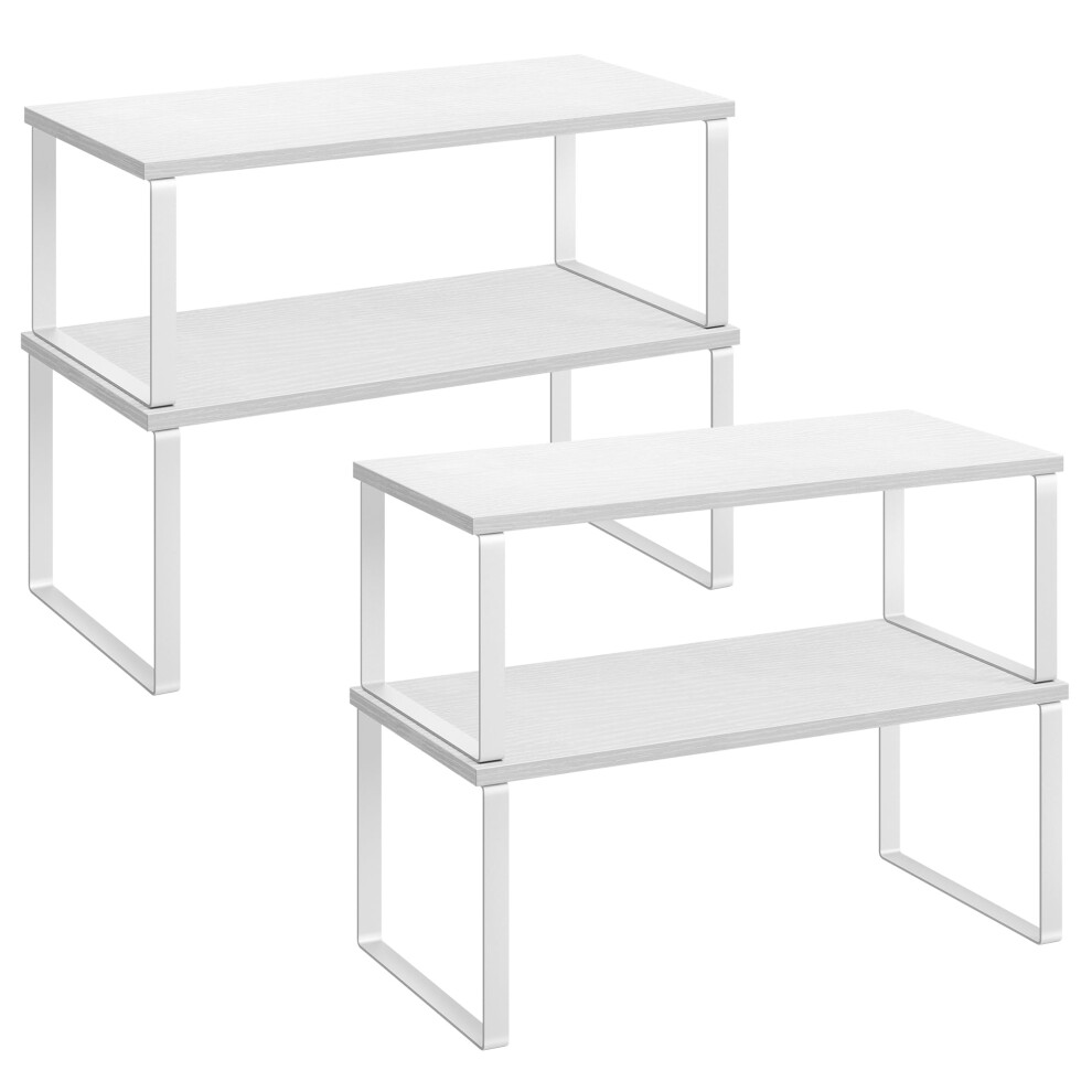 Kitchen Cupboard Organisers KCS028W01, 4-Pack, Stackable And Expandable Counter Shelves, Metal And Engineered Wood