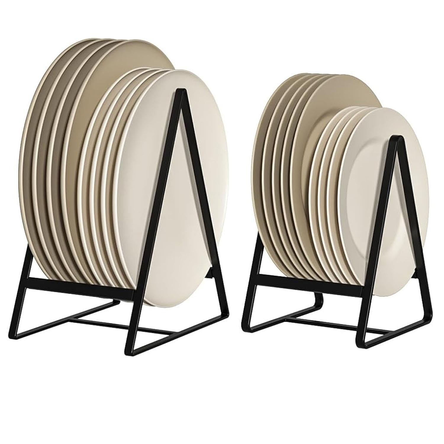 2 Pack Kitchen Plate Rack Organisers Metal Dish Holders for Cupboard Countertop