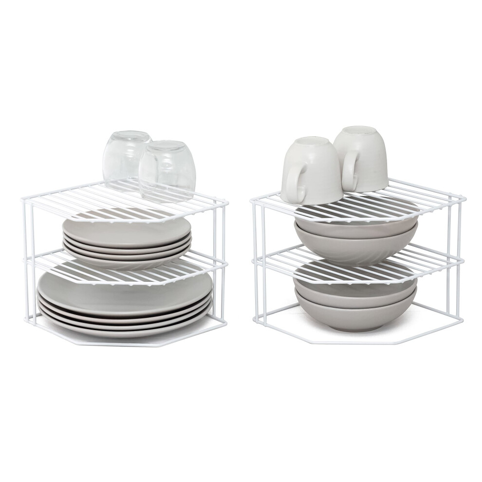 simplywire ? 3 Tier Plate Racks ? Pack of 2 Kitchen Cupboard Organisers ? White Plastic Coated Steel