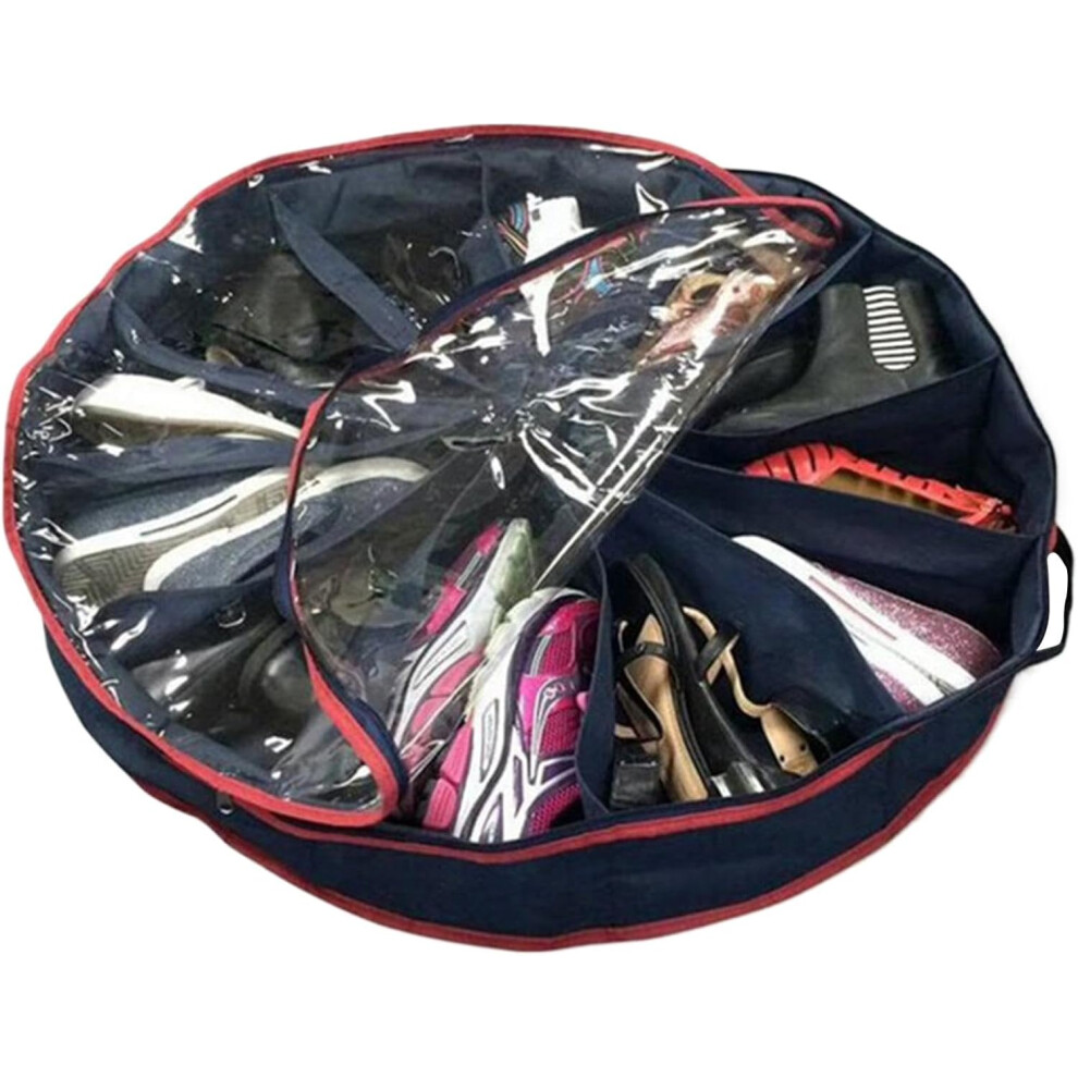 Foldable Shoe Storage Bag with Lid, 10 Dividers, Round Shoe Storage Box, Portable Cupboard Organisers, Shoe Bags for Travel, Home