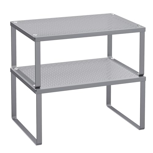 SONGMICS Set of 2 Cupboard Organisers, Kitchen Storage, Stackable, Expandable, Metal Counter Shelves, Silver KCS01SV