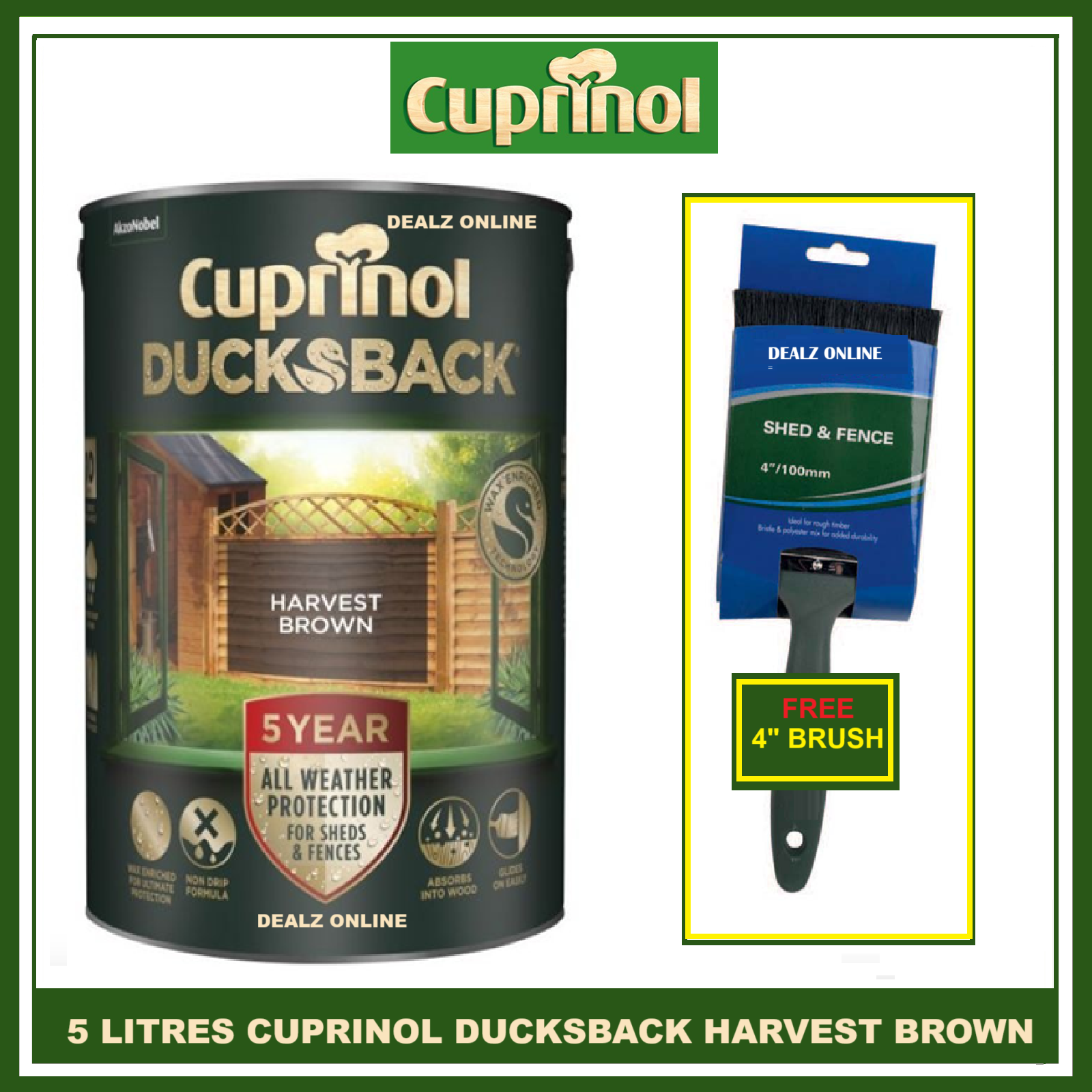 Cuprinol 5 Year Ducksback HARVEST BROWN 5L + 4" FENCE BRUSH