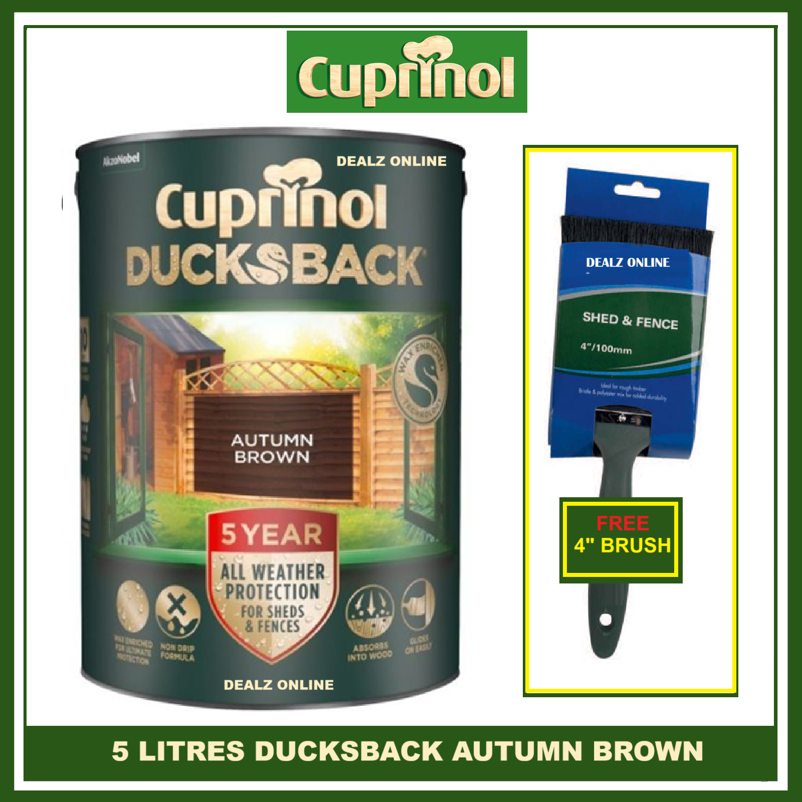 Cuprinol 5 Year Ducksback AUTUMN BROWN 5L + 4" FENCE BRUSH