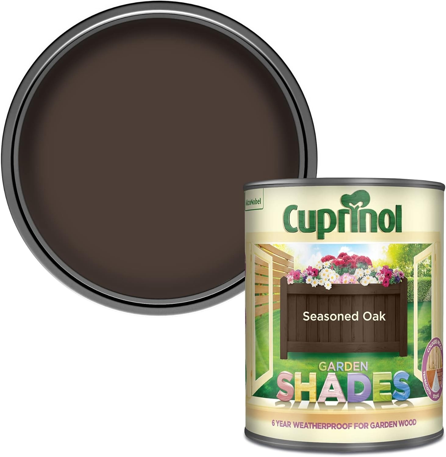 Cuprinol SEASONED OAK 1L Garden Shades Furniture Sheds Wood Paint FREE BRUSH &