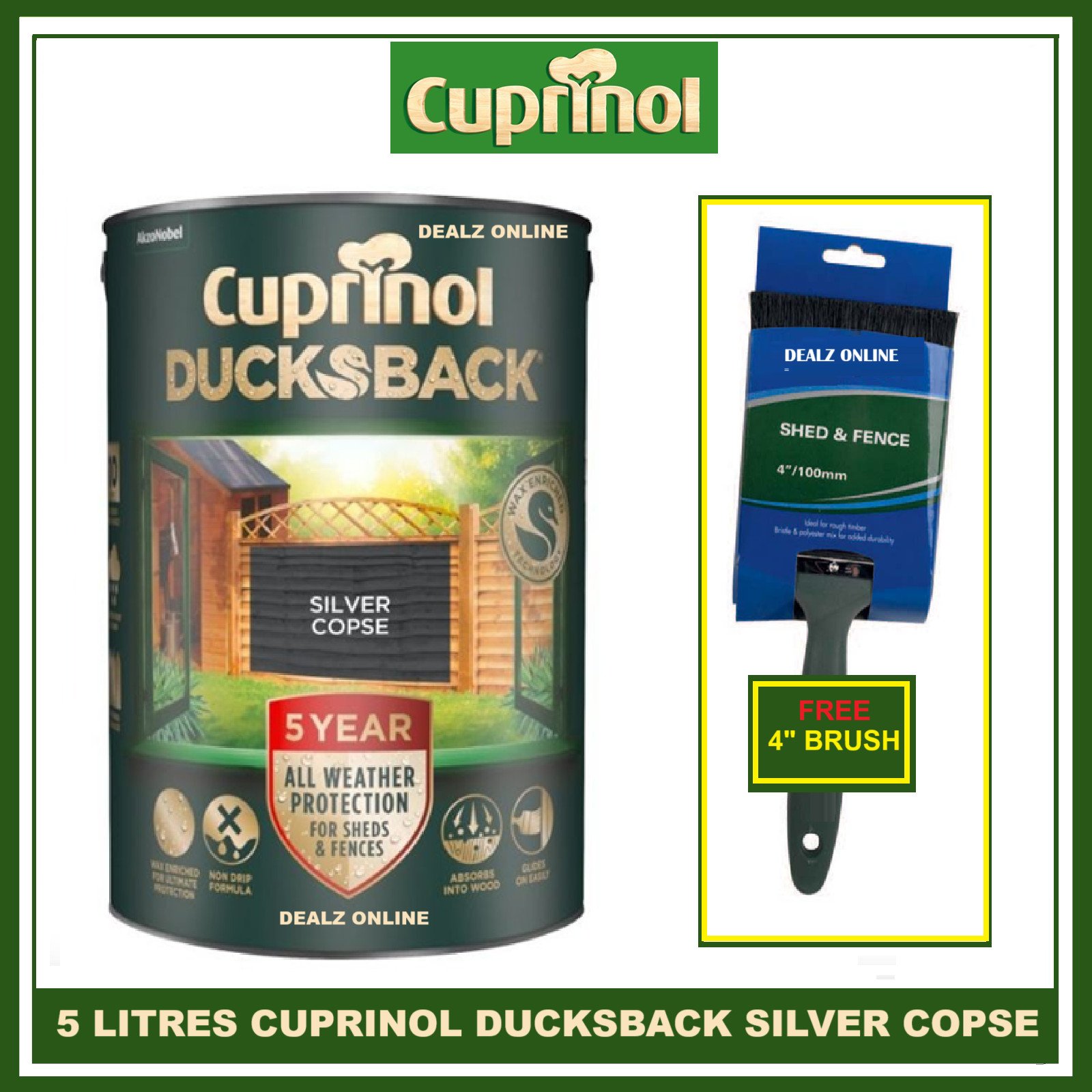 Cuprinol 5 Year Ducksback SILVER COPSE 5L + 4" FENCE BRUSH