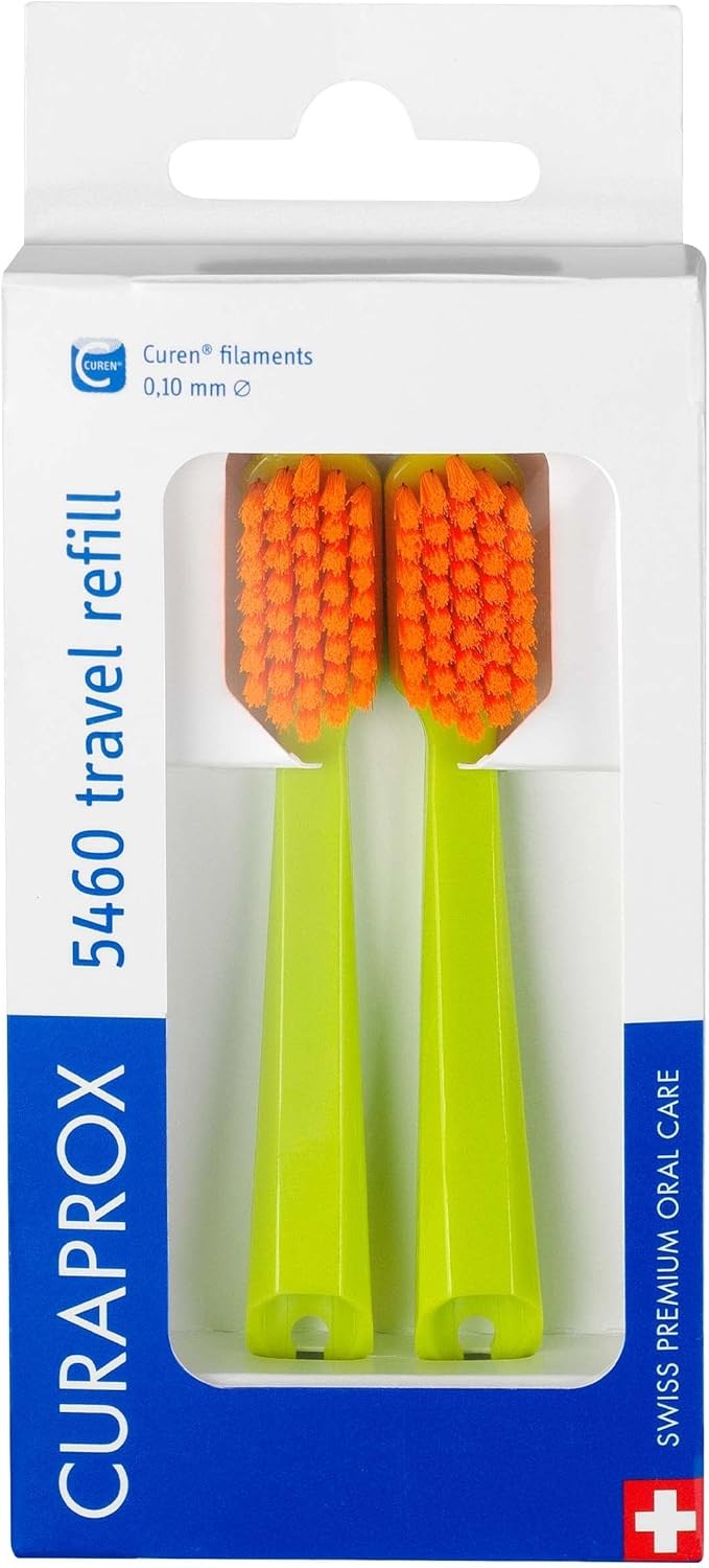 Curaprox CS 5460, refill for travel toothbrush Travel-Set, green-orange, 2 pieces