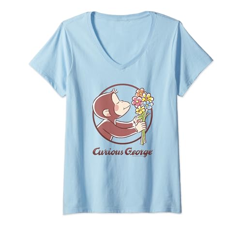 Curious George Flower Bouquet Poster V-Neck T-Shirt