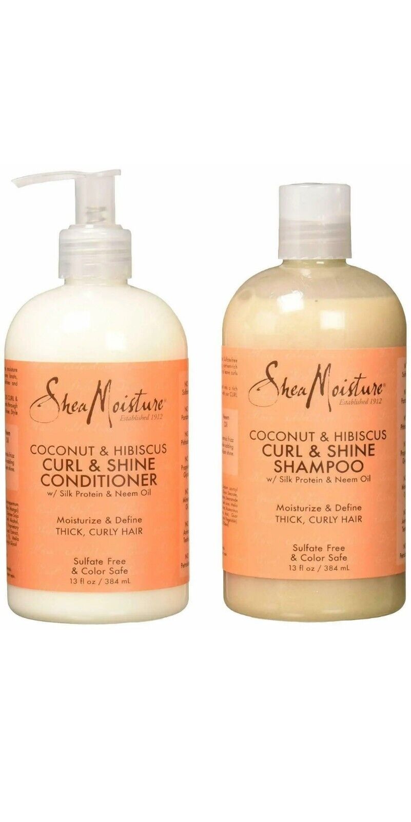 Shea Moisture Coconut & Hibiscus Curl & Shine Shampoo and Conditioner Set 13 oz