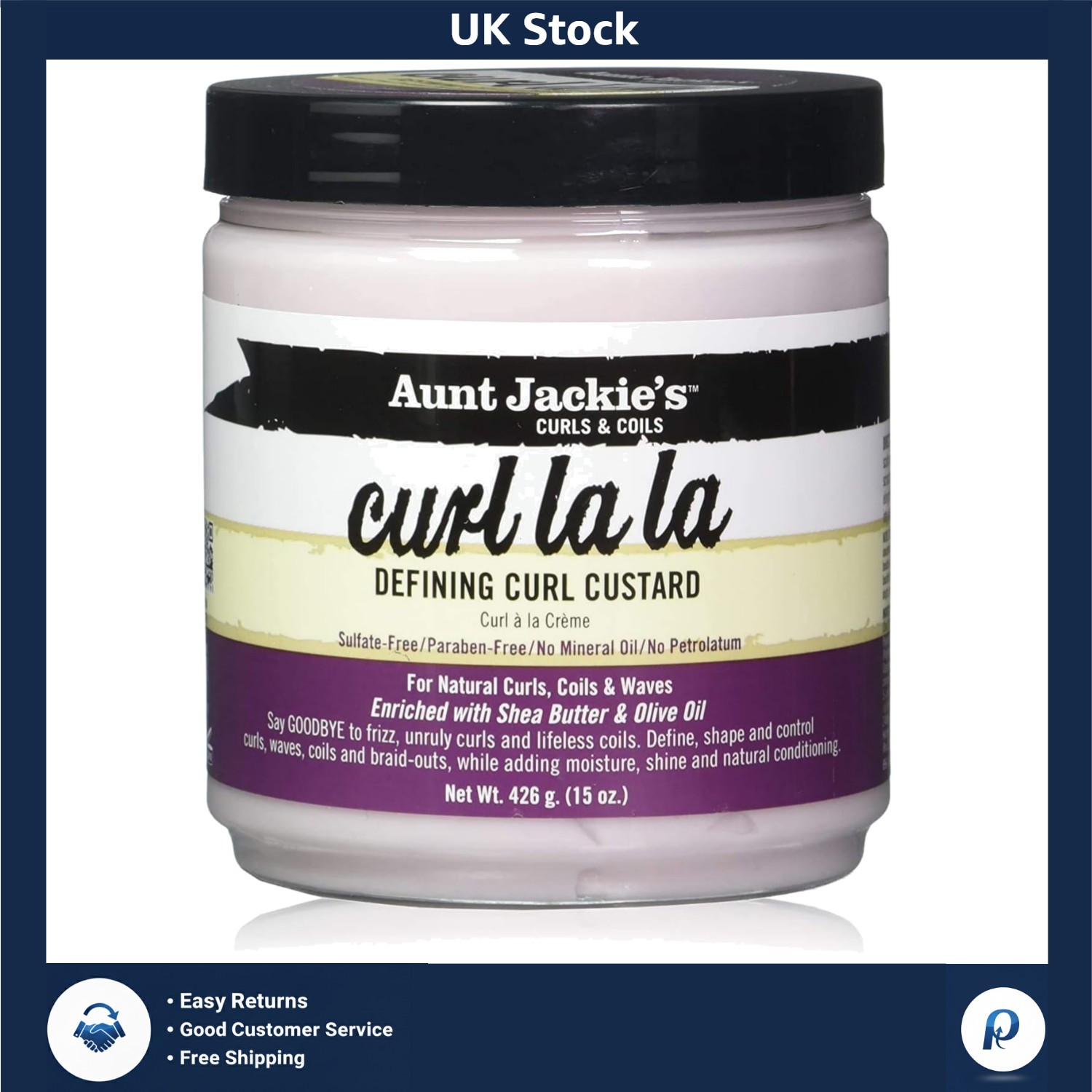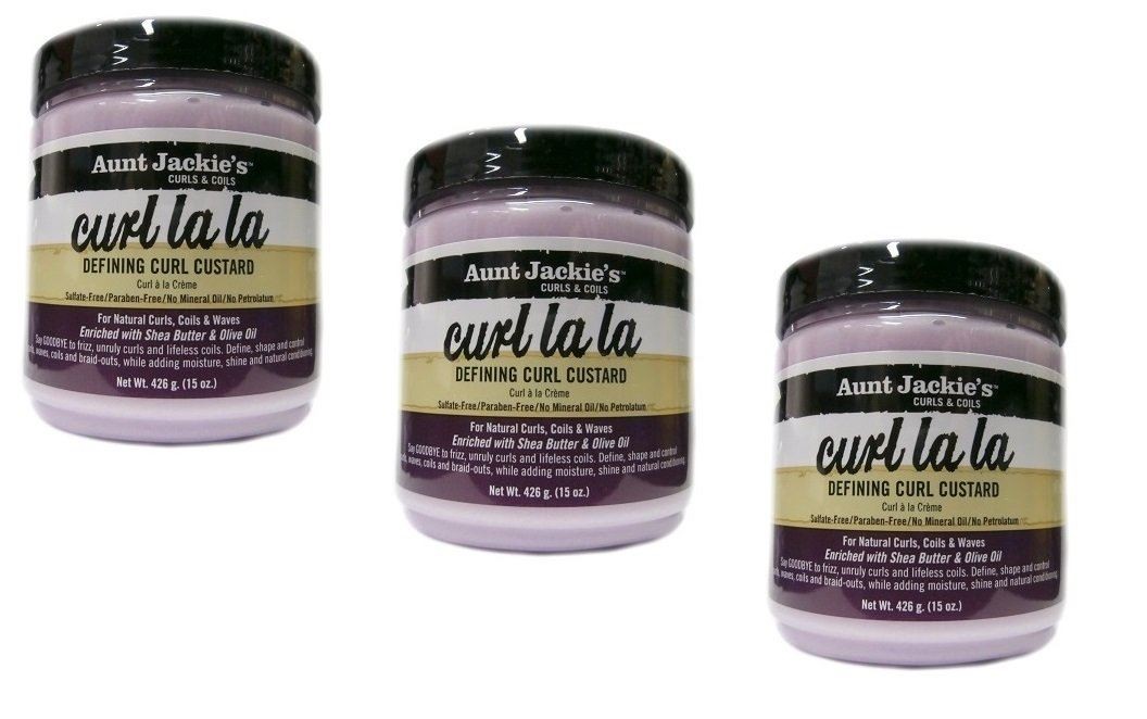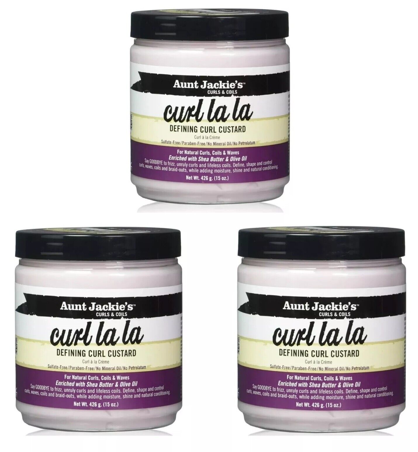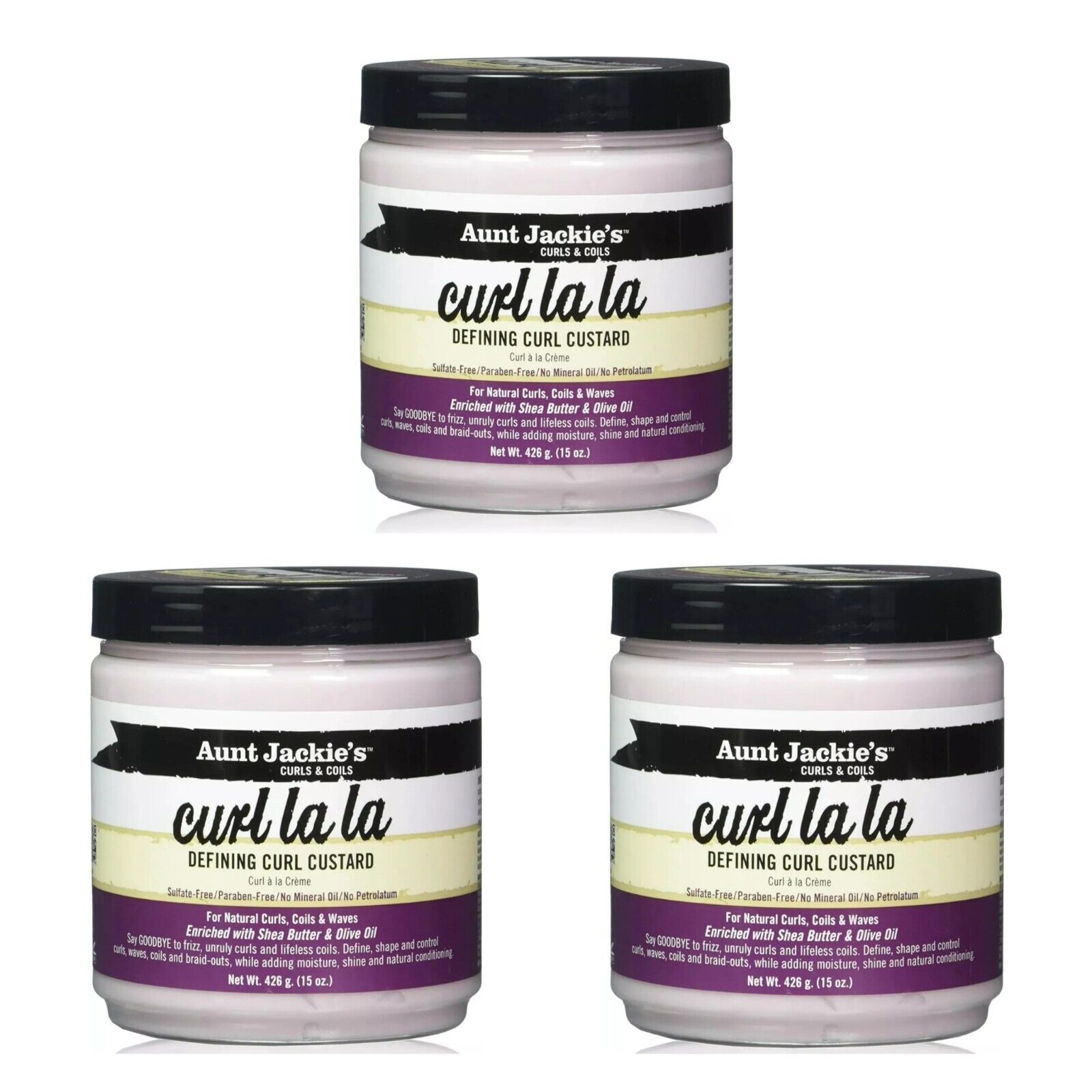 3 X Aunt Jackie’s Curl La La Defining Curl Custard Sulfate & Paraben Free 426g.