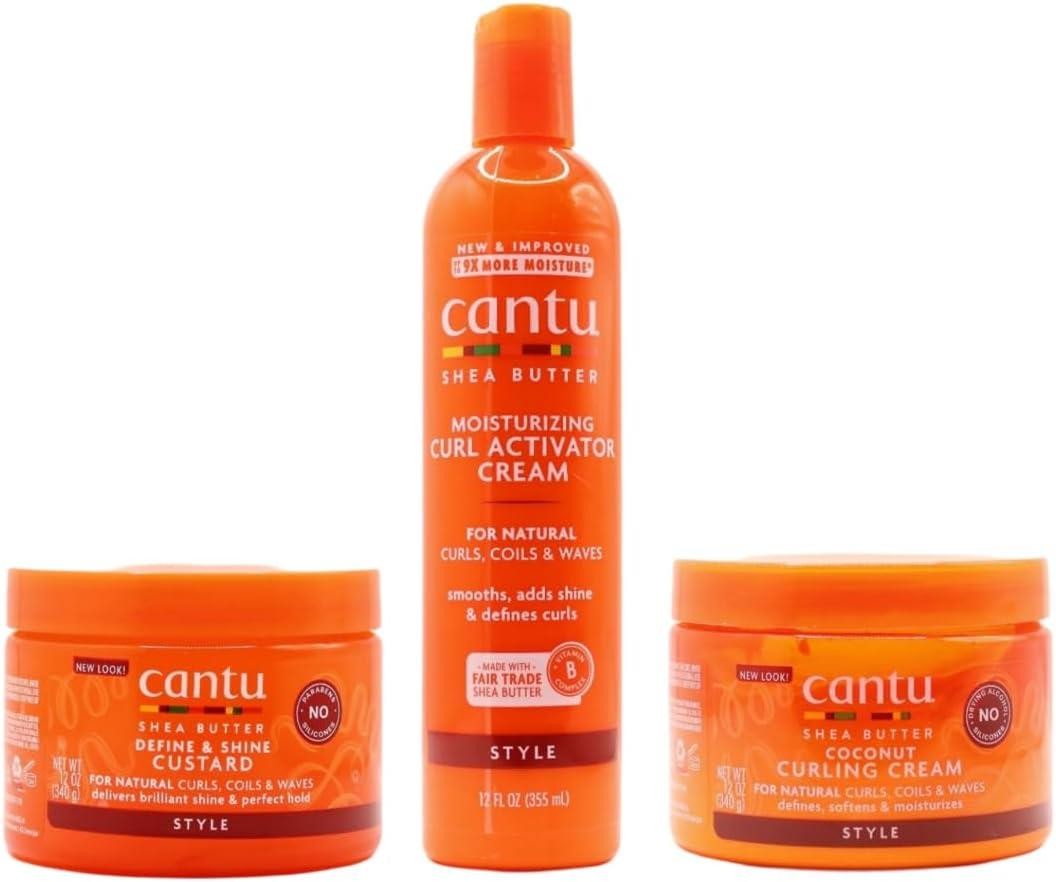 Cantu Shea Butter Curl Activator Cream 12Oz, Define & Shine Custard12Oz, Coconut Curling 12Oz (Set Of 3)