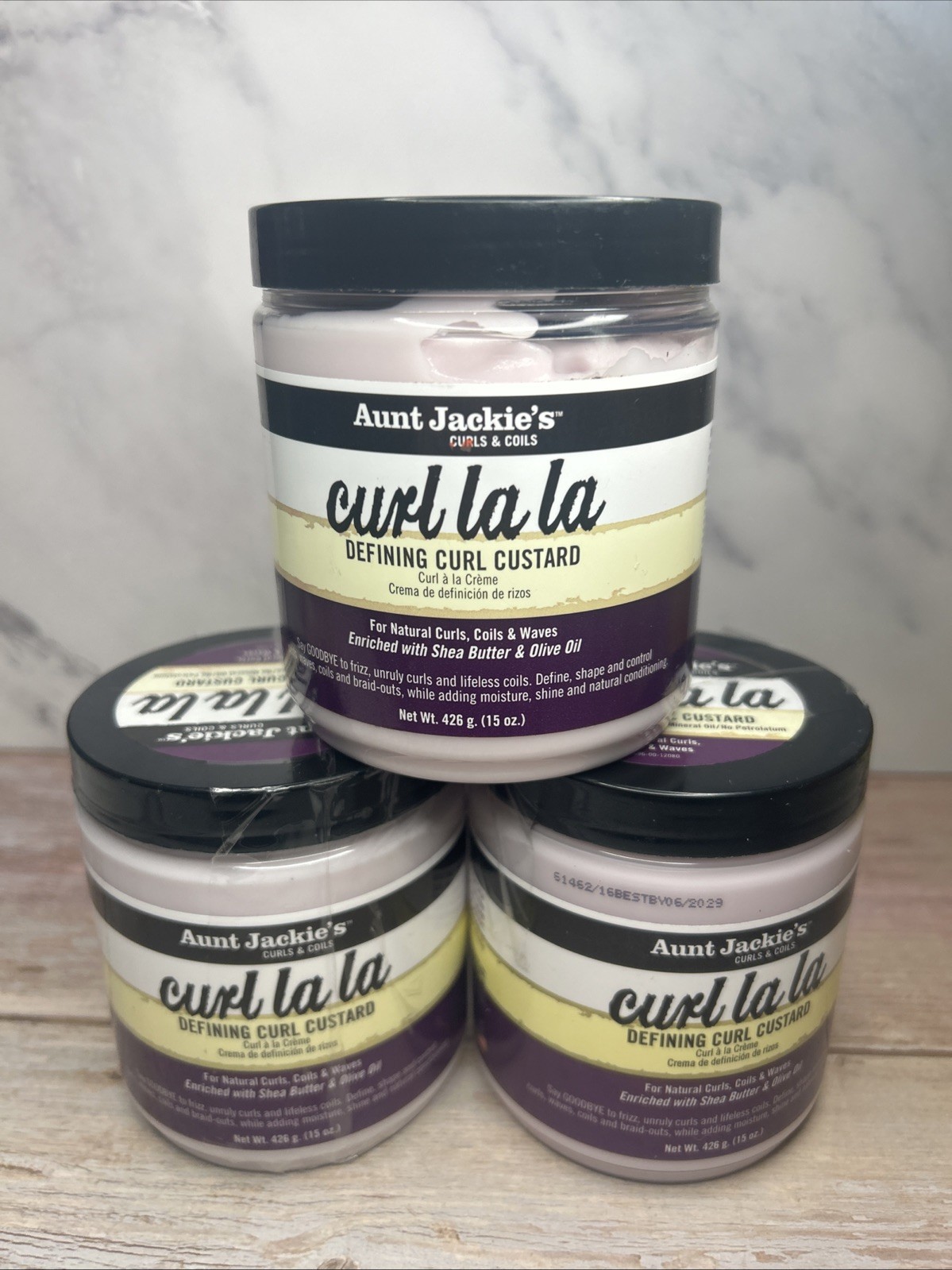 3 X AUNT JACKIE'S CURL LA LA DEFINING CURL CUSTARD 15OZ FOR CURLY, WAVY HAIR