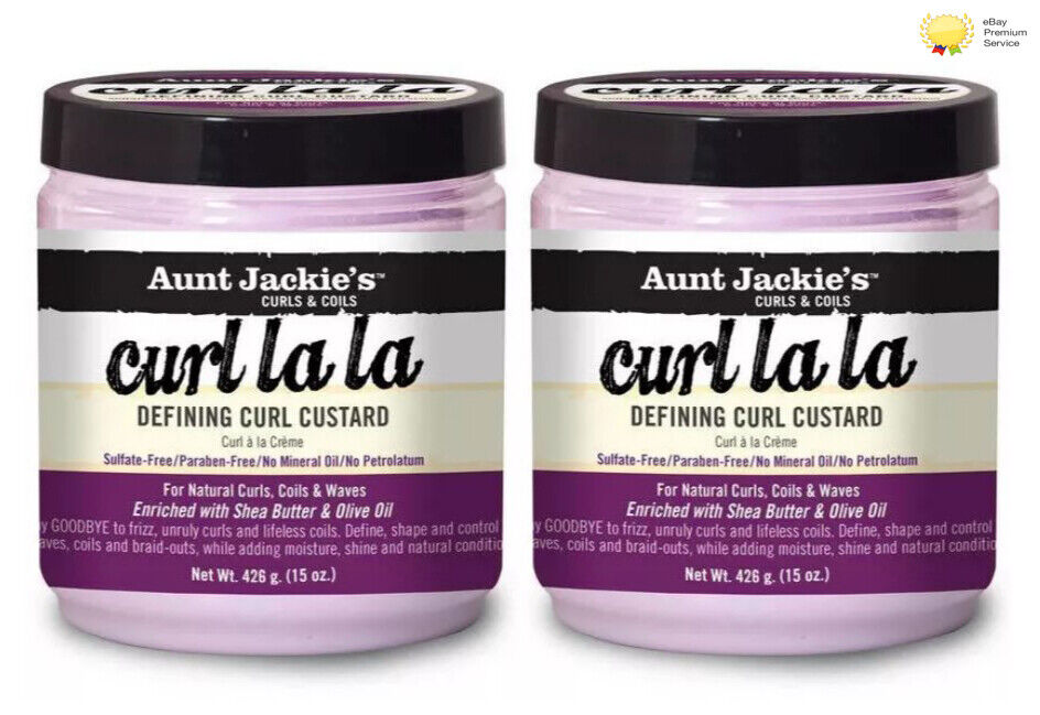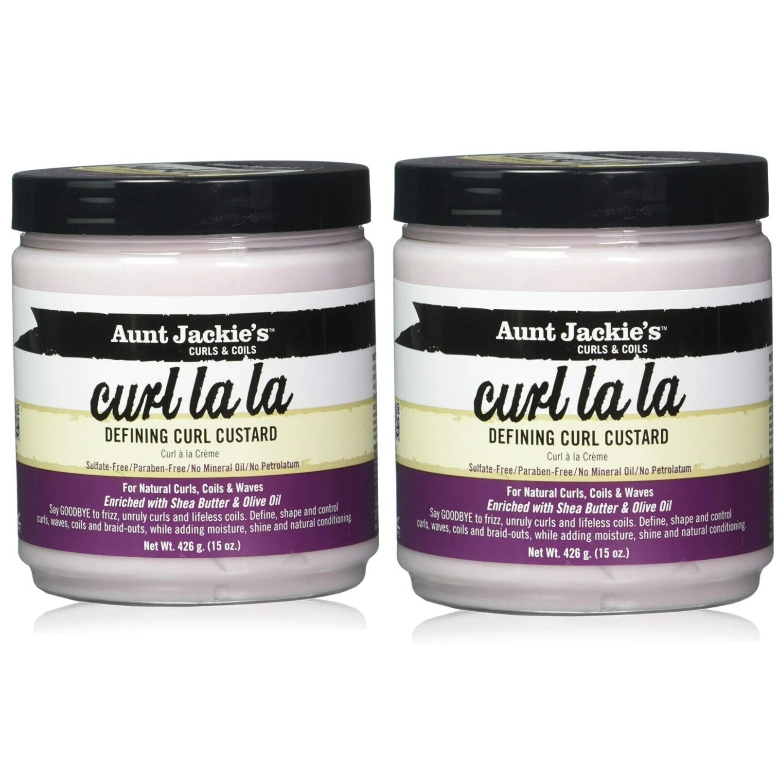 2 X Aunt Jackie’s Curl La La Defining Curl Custard Sulfate & Paraben Free 426g.