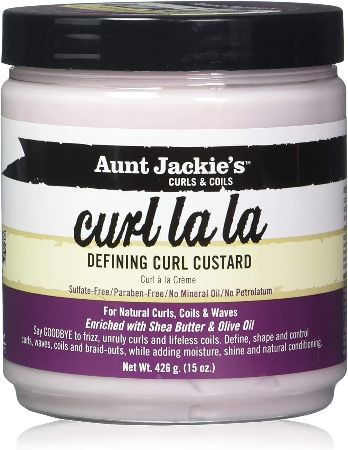 Aunt Jackie's Curls and Coils Curl La La Defining Curl Custard for Natural Hair Curls, Coils and Waves Enriched with shea Butter and Olive Oil, 18 oz