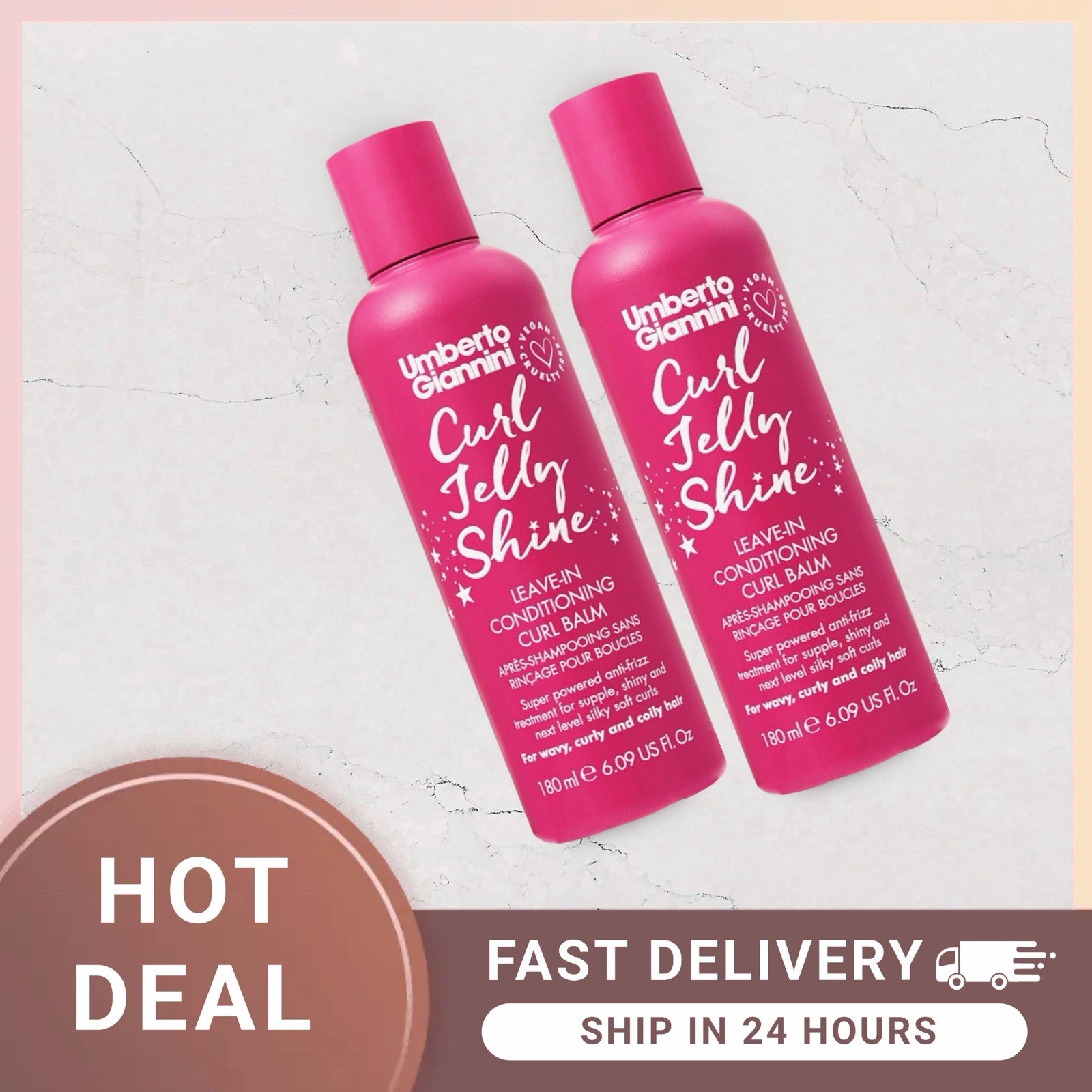 2 x Umberto Giannini CURL JELLY SHINE Leave In Conditioning Curl Balm 180ml