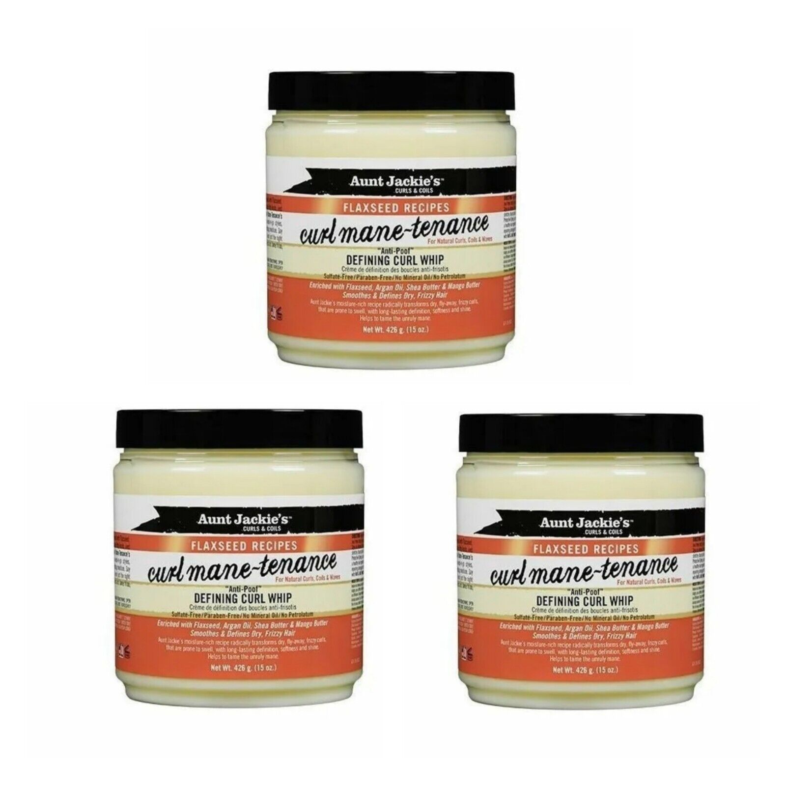 3 X Aunt Jackie’s | Flaxseed Recipes Curl Mane-Tenance Defining Curl Whip 15oz.