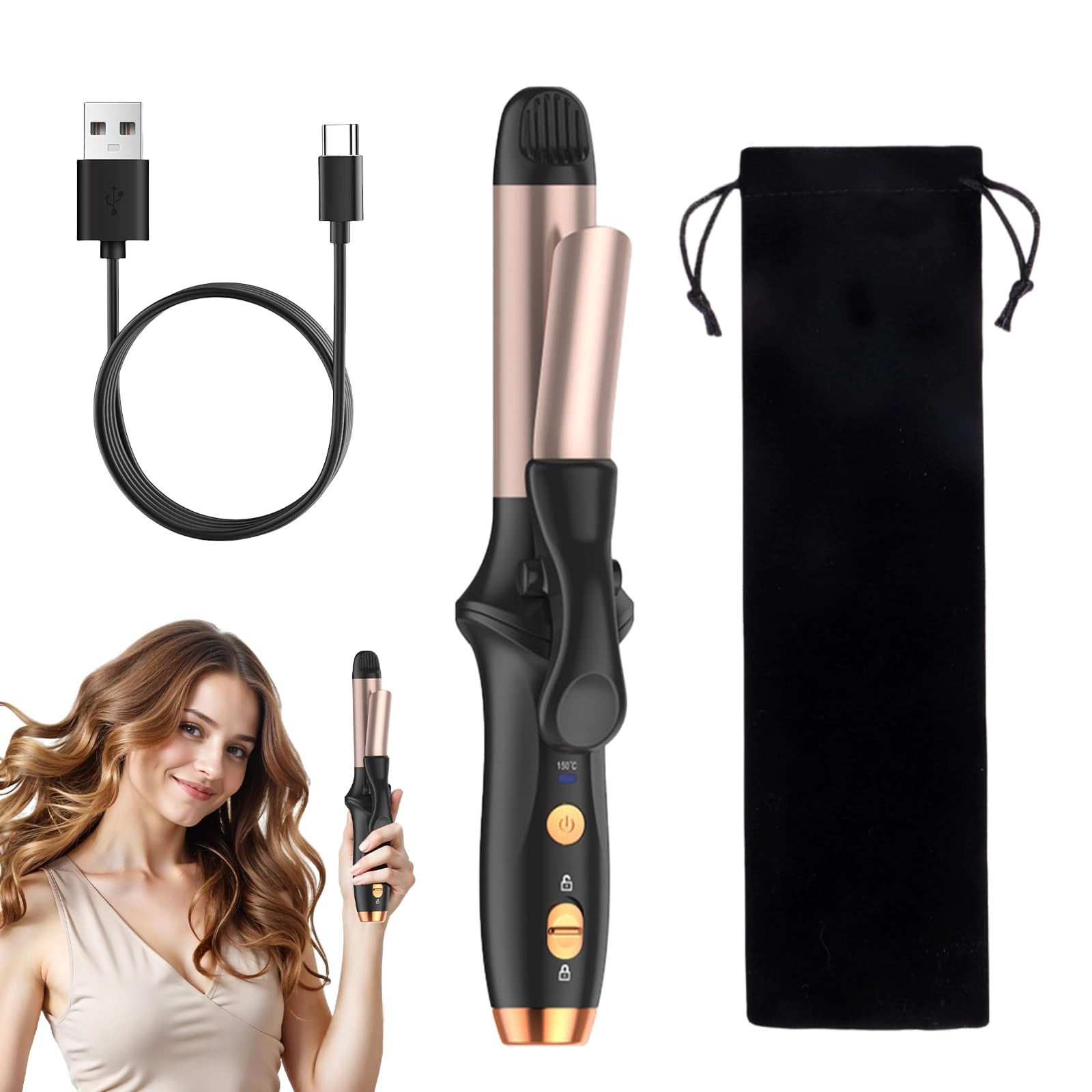 Mini Curling Wand Travel Cordless Hair Curler, 1 in/ 25mm Portable Curling Tong