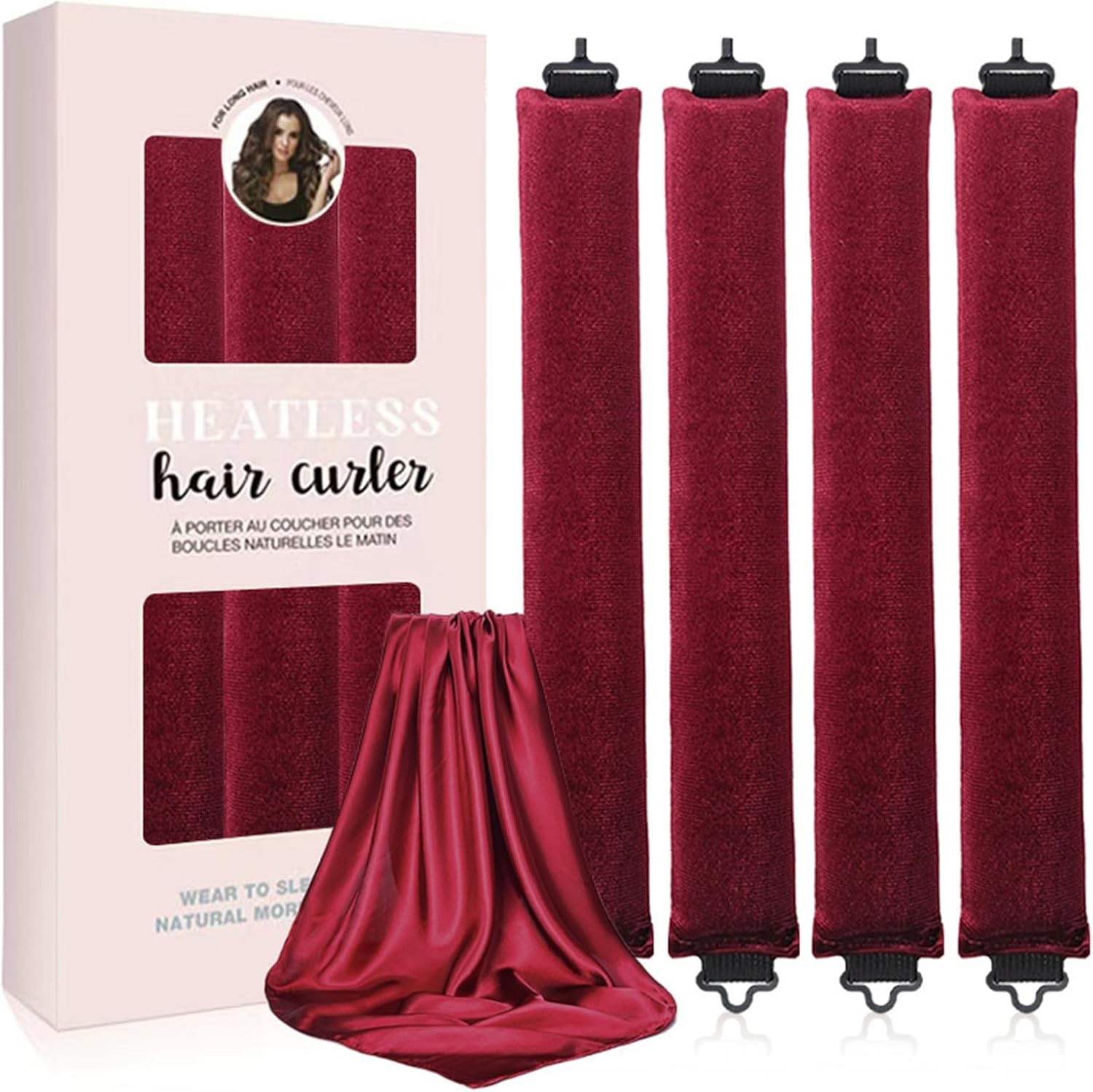 4 Pcs Heatless Curlers, Hair Curlers for Long Hair, Heatless Curling Rod, for A