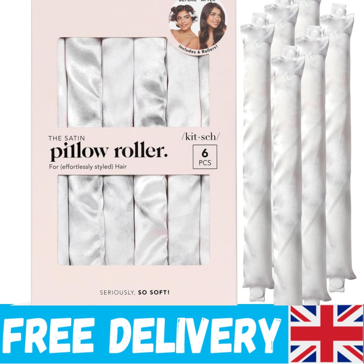 Kitsch Satin Pillow Rollers - Soft Hair Rollers to Sleep In | Heatless Soft Curlers for Voluminous Hair | Flexible Hair Curlers for All Hair Types | Flexible Rollers, 6pc (Marble)