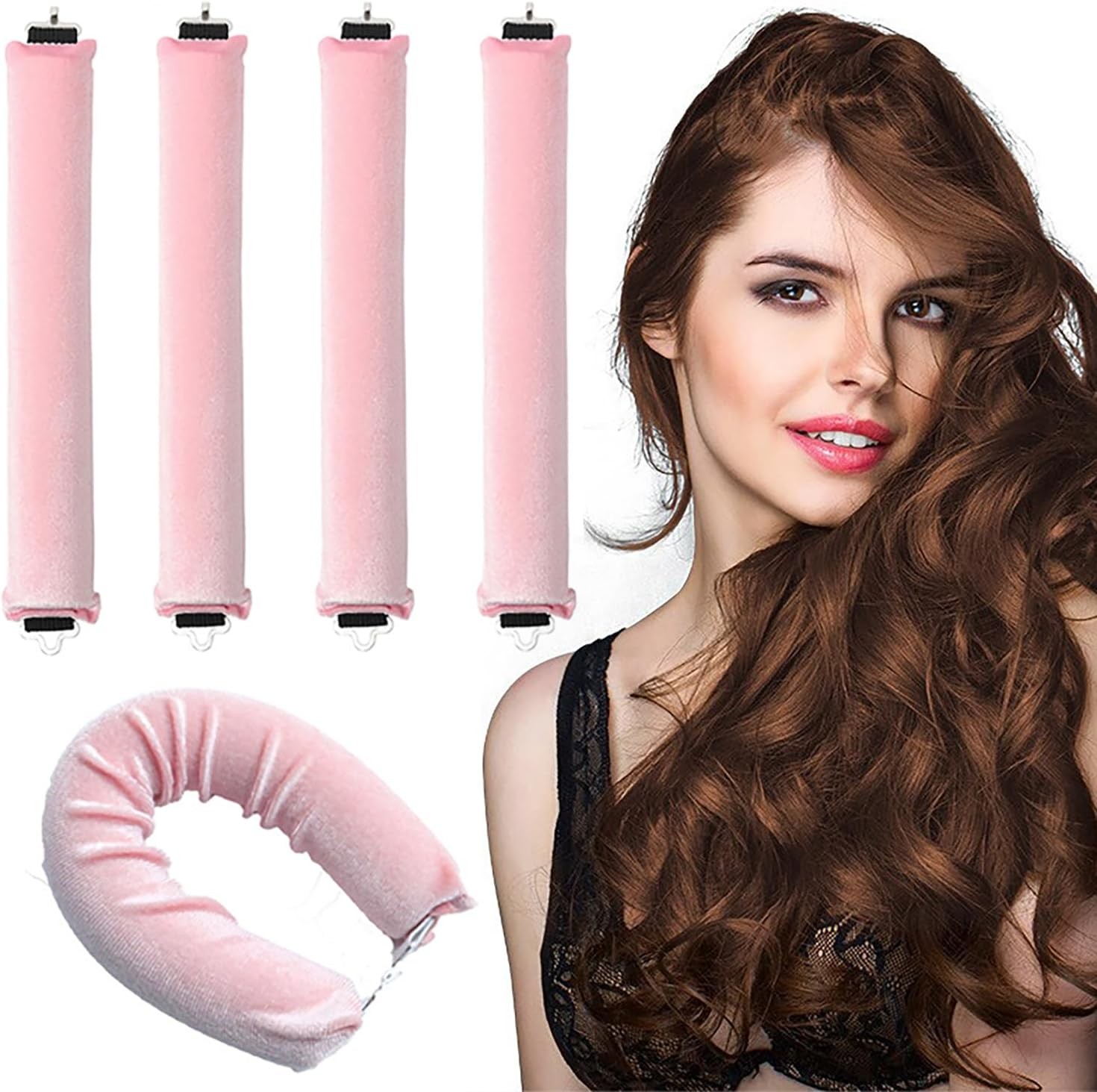 Heatless Curlers Headband, Heatless Curls Set, Soft Velour Heatless Hair Curler, Hair Curlers No Heat for Hair DIY (Pink)