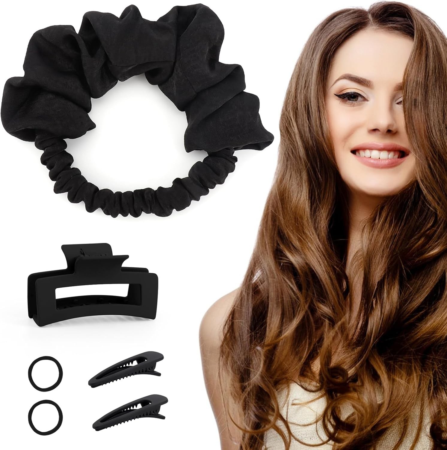 HVIHWI Heatless Curlers Set for Long Hair with Sleep Bonnet, Hair Curlers No Heat Overnight Headband, Soft Heatless Hair Curler for Sleeping to Create Waves & Volume, Black
