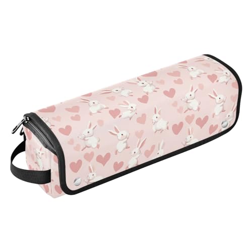 Light Pink Heart - Shaped Cartoon White Rabbits 2 in 1 Hair Tools Organizer with Heat Resistant Mat Removable Hair Styling Accessories Organizer for Straigheners, Curling Iron, Hair Dryer,