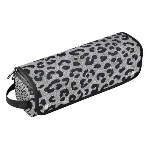 Hair Tool Travel Bag with Iron Mat Removable Hair Styling Accessories Organizer for Straigheners, Curling Iron, Hair Dryer, Fake Glitter Leopard Print Grey Travel Bag for Women