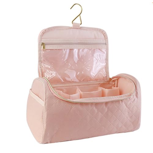 Meichoon Cosmetic Bag for Women Compatible with Hair Dryer Organizer for Curling Iron Accessories Portable Case Pouch Hanging Tote with Hook Pink