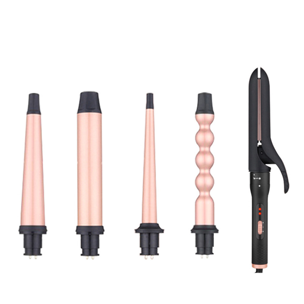 5 in 1 Curling Wand Set 5pcs Barrel Heat Glove 60W Rose Gold 100-240V