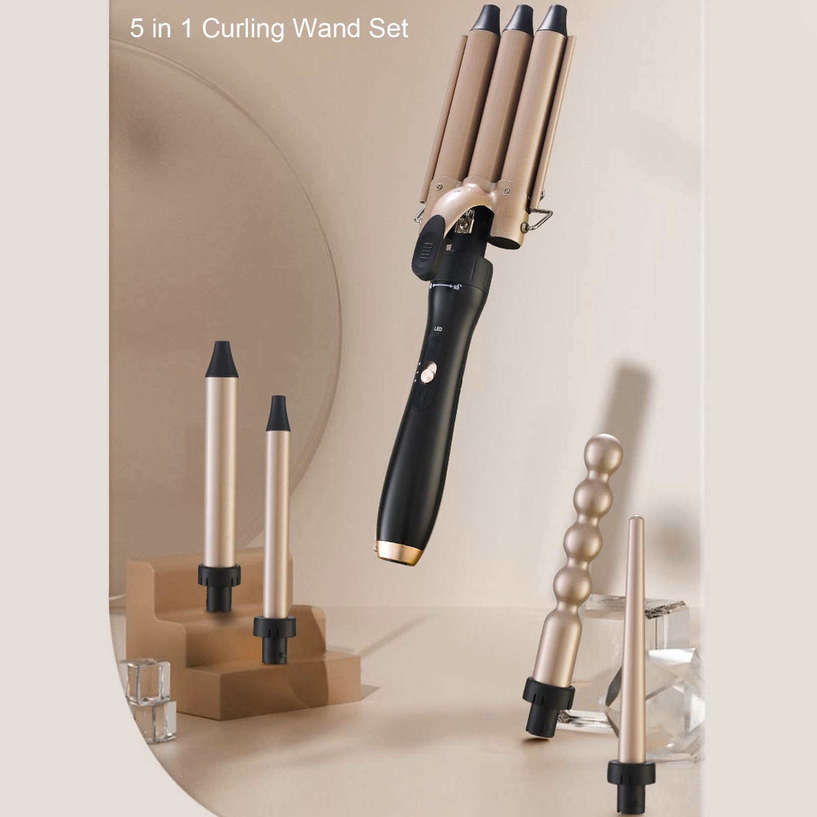 5-in-1 LED Display Curling Wand Set With 3 Barrel Waver Curling Iron And Hair