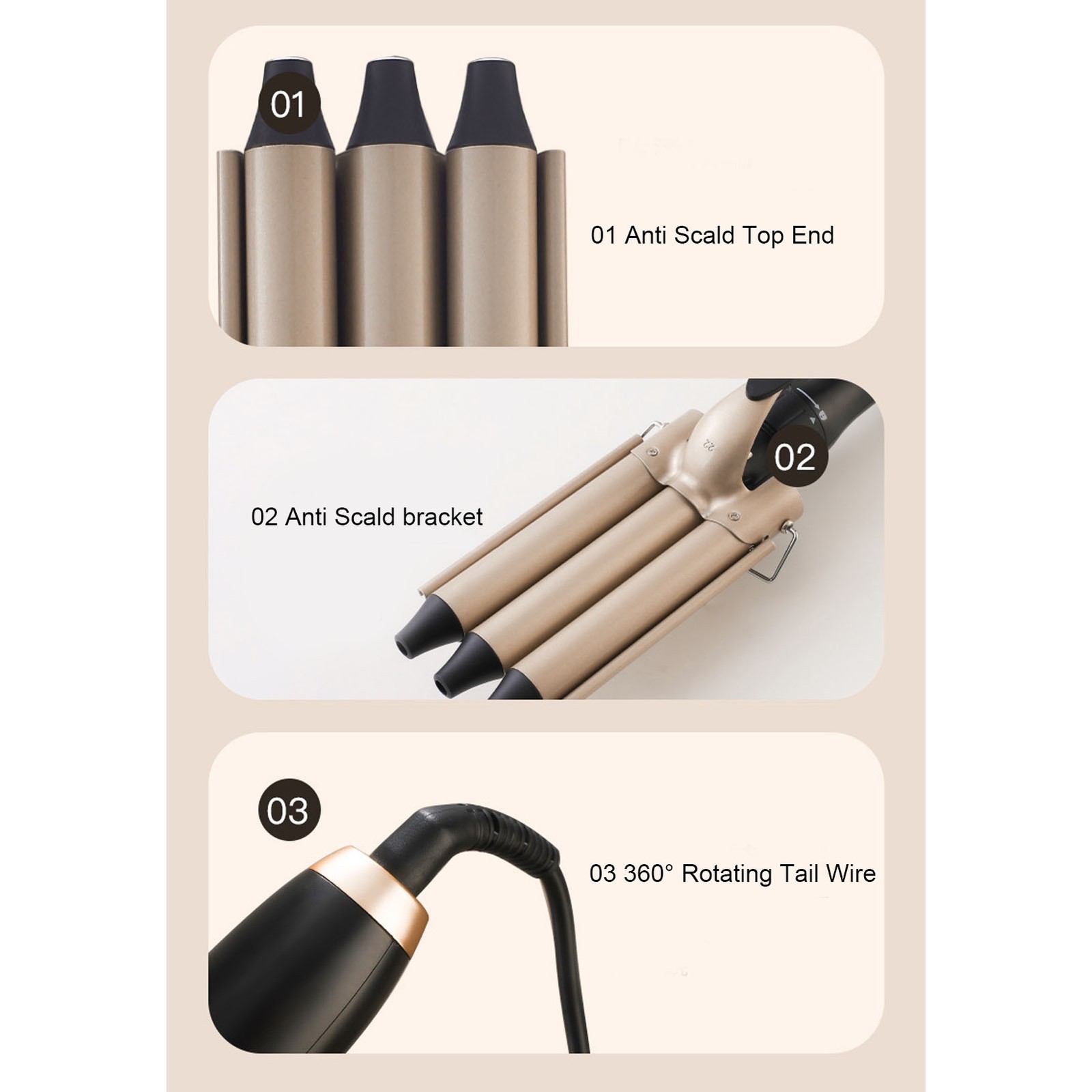 Curling Iron 3 in 1, Hair Curler Ceramic Curling Wand Set with 3 Interchangeabl