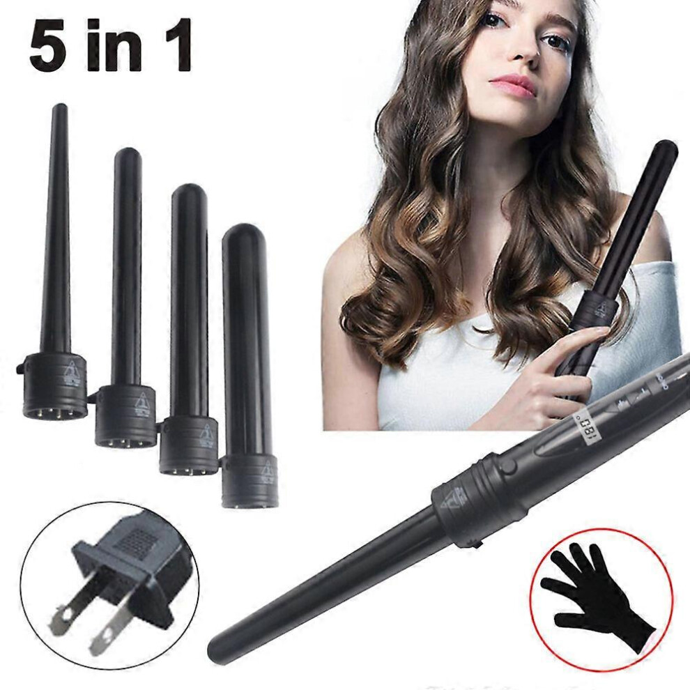 5 In 1 Curling Wand Set With Heat Protective Glove For Styling Professionals