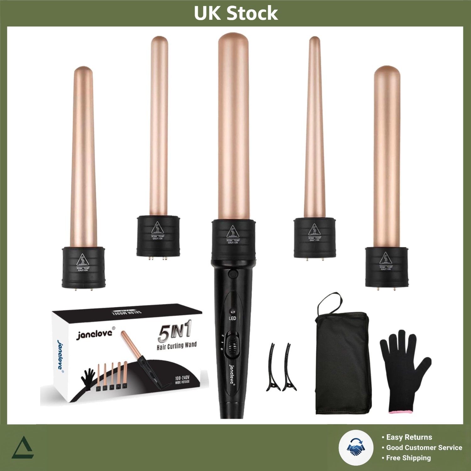 janelove Curling Wand,Hair Curlers for Long Hair, Curling Wand Set with 5 Ceram