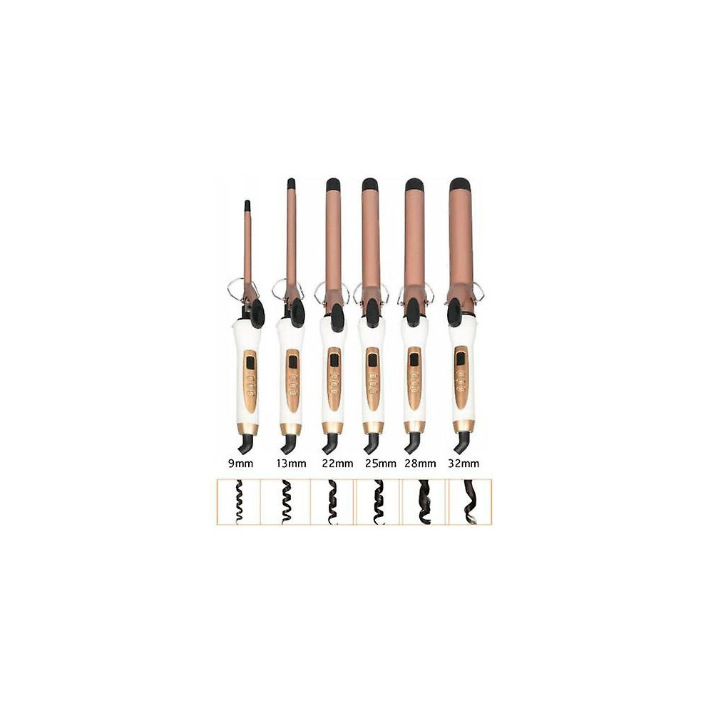 (EU Plug, 9MM) 9-32mm Professional Ceramic Curling Iron Led Curling Wand Salon Clamp Styler