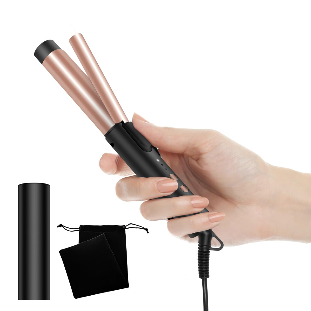 Curling Iron for Short Hair, 1 Inch Mini Ceramic Wand, Travel Size with Clamp and Universal Voltage