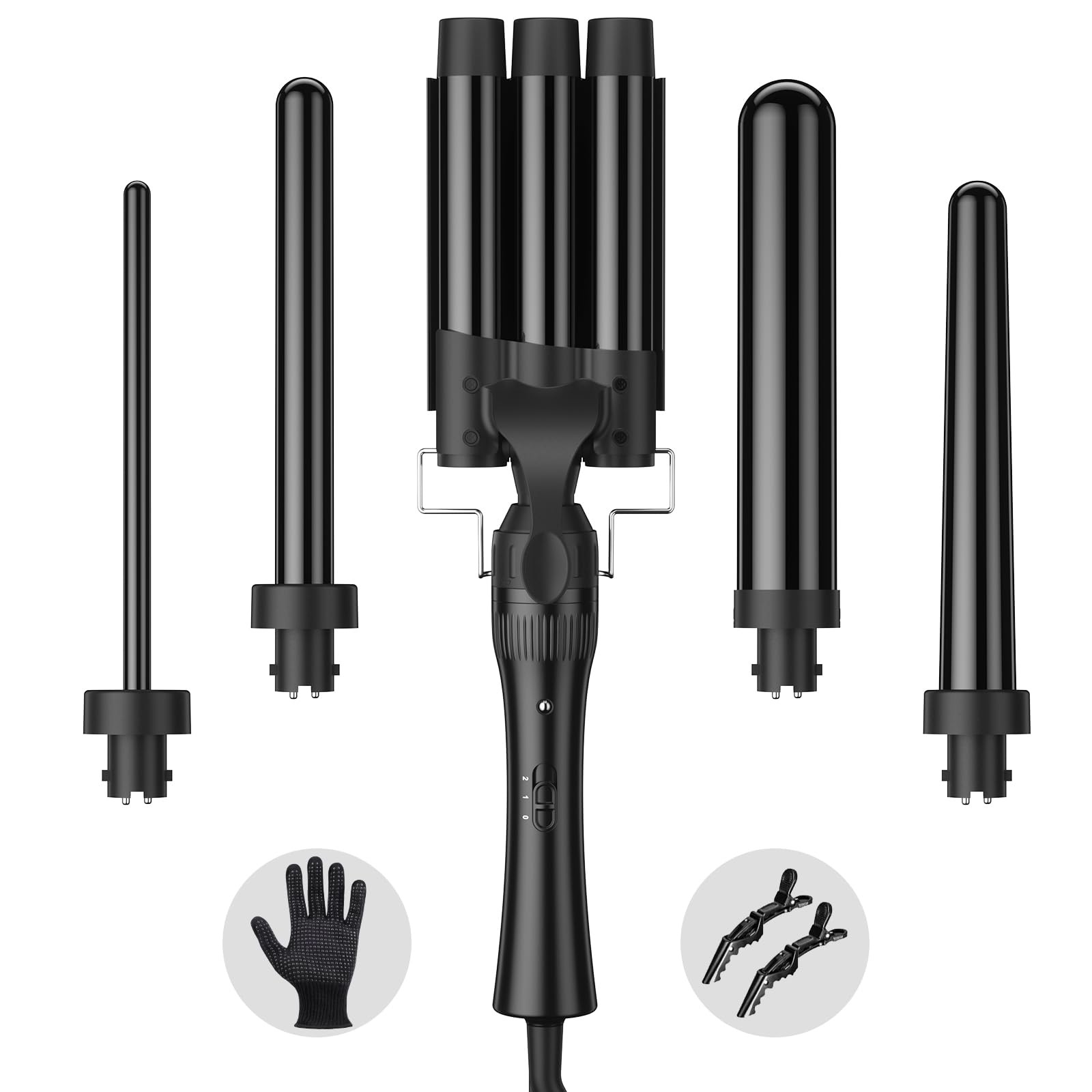 Plug Plug 5 In 1 Curling Wand Set LED Display Waver Curling Iron Wand With SG