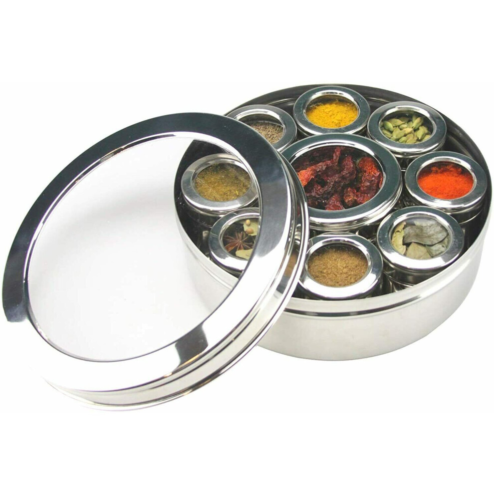 Authentic Indian Spice Tin Stainless Steel Masala Dabba Curry 9pc