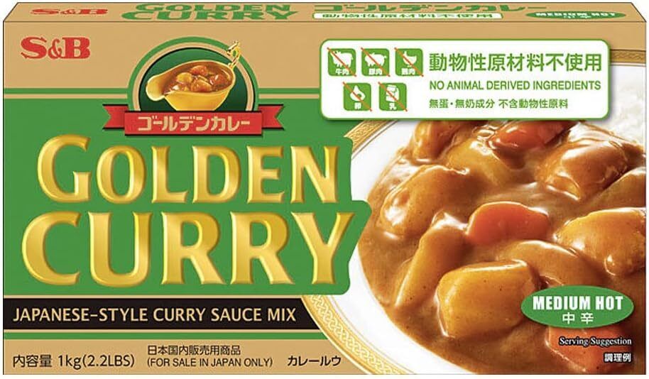 S & B Japanese Golden Curry Sauce Mix Medium Hot Rich Flavour No Meat Pack 1kg