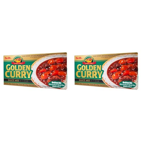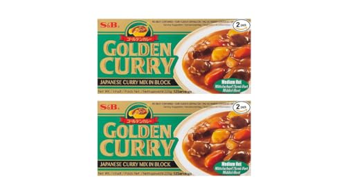 S&B Golden Curry Medium Hot 220g (Pack of 2) – Authentic Japanese Curry Sauce Mix In Block, Rich & Aromatic, Easy to Cook, Perfect for Bold & Flavorful Meals!