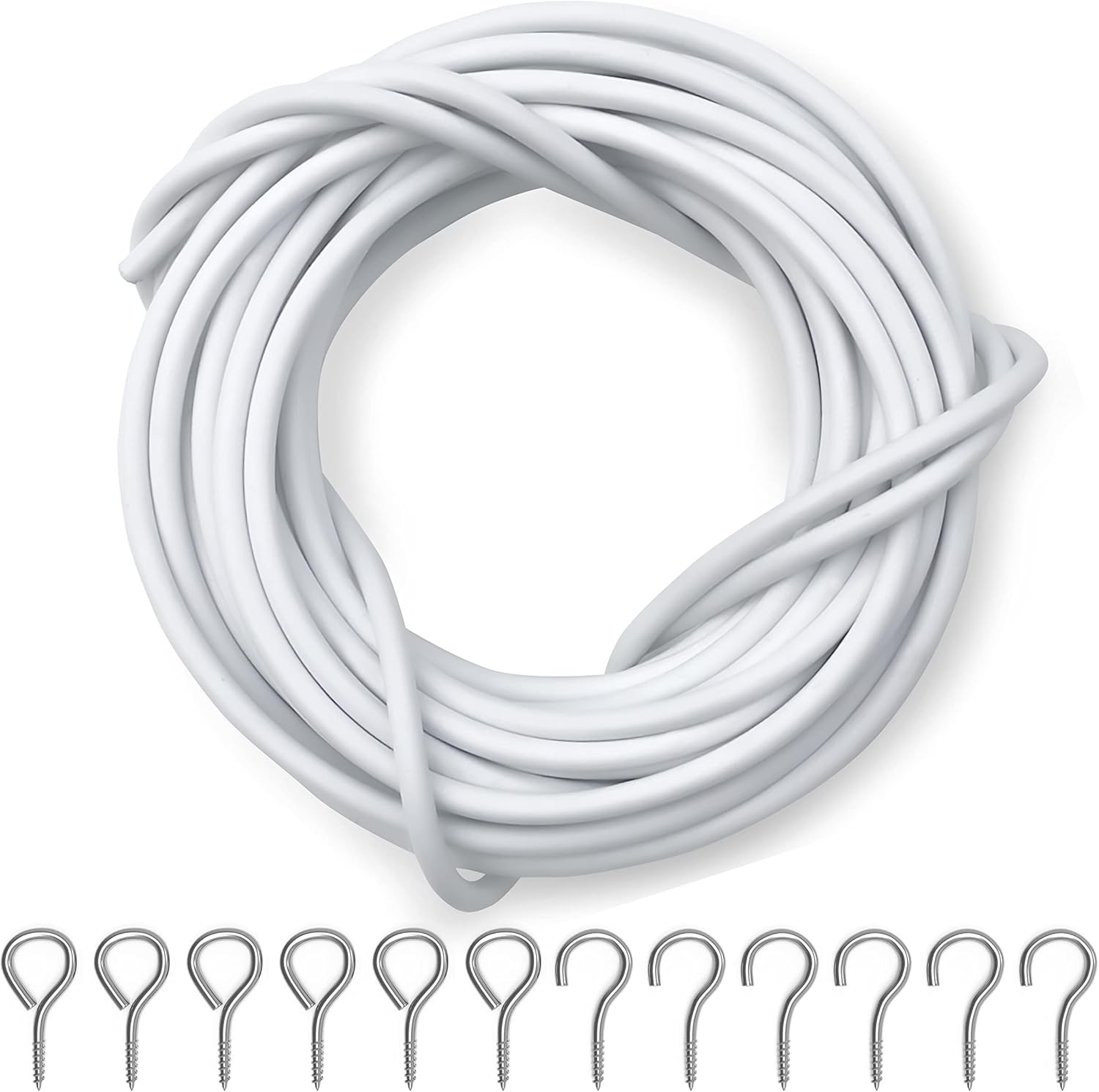ASIWUJING Net Curtain Wire and Hooks Set 10M Net Curtain Wire with 20pcs Eye Bo