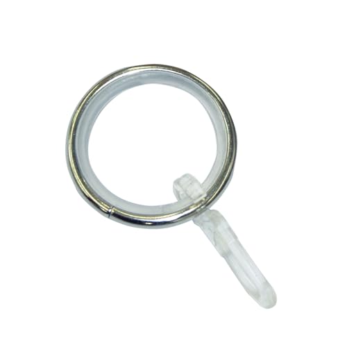 50 Pack Metal Curtain Rings And Hooks, 30mm Internal Diameter Eyelets for Curtain Poles And Rods With 50 White Plastic Hooks, For Drapery, Rods and Shower Hanging, Silver