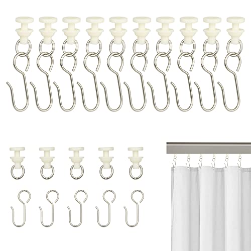 80 Pcs Curtain Hooks and Gliders Set, 40 Stainless Steel Shower Curtain Hooks and 40 Pieces Rail Gliders for Dorm Window Bathroom Shower (80PCS)