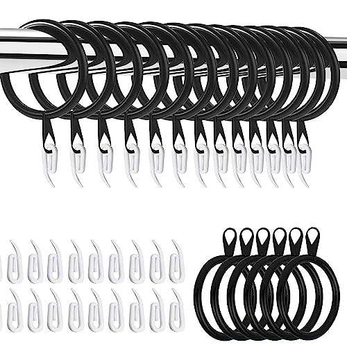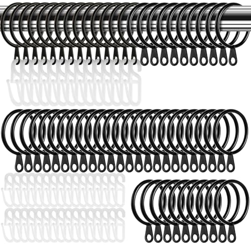 ASelected 50 Pack 38mm Large Curtain Rings and Hooks,Metal Drapery Curtain Rings Hanging Rings with Plastic Hooks,Hoops,Durable and Rustproof Curtain Pole Rings for Curtains,Rods,Drapery,Black