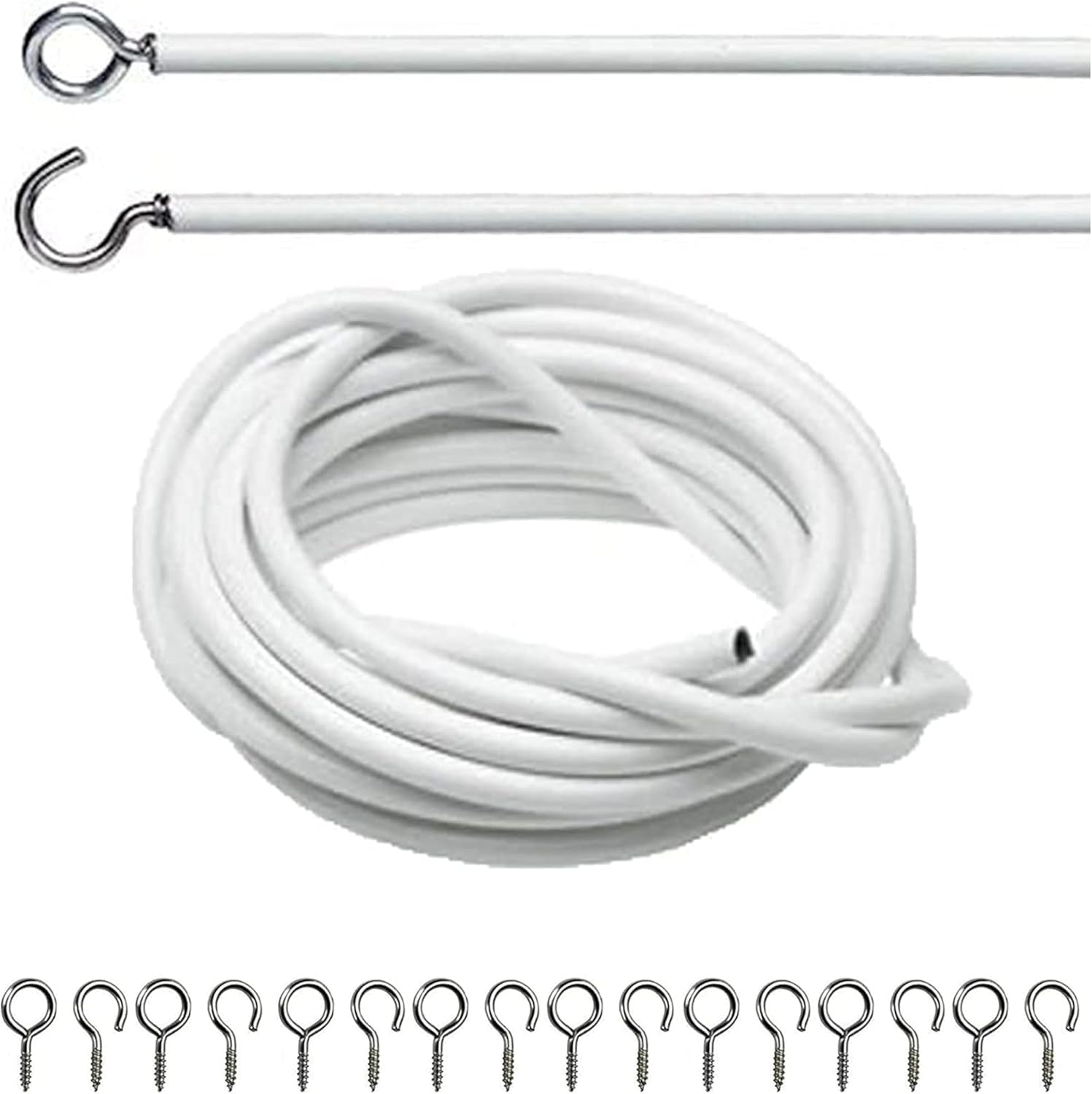 Dikots Net Curtain Wire and Hooks Set - 20M Curtain Wire Kit Includes 40 Eyes & 40 Hooks - Multipurpose