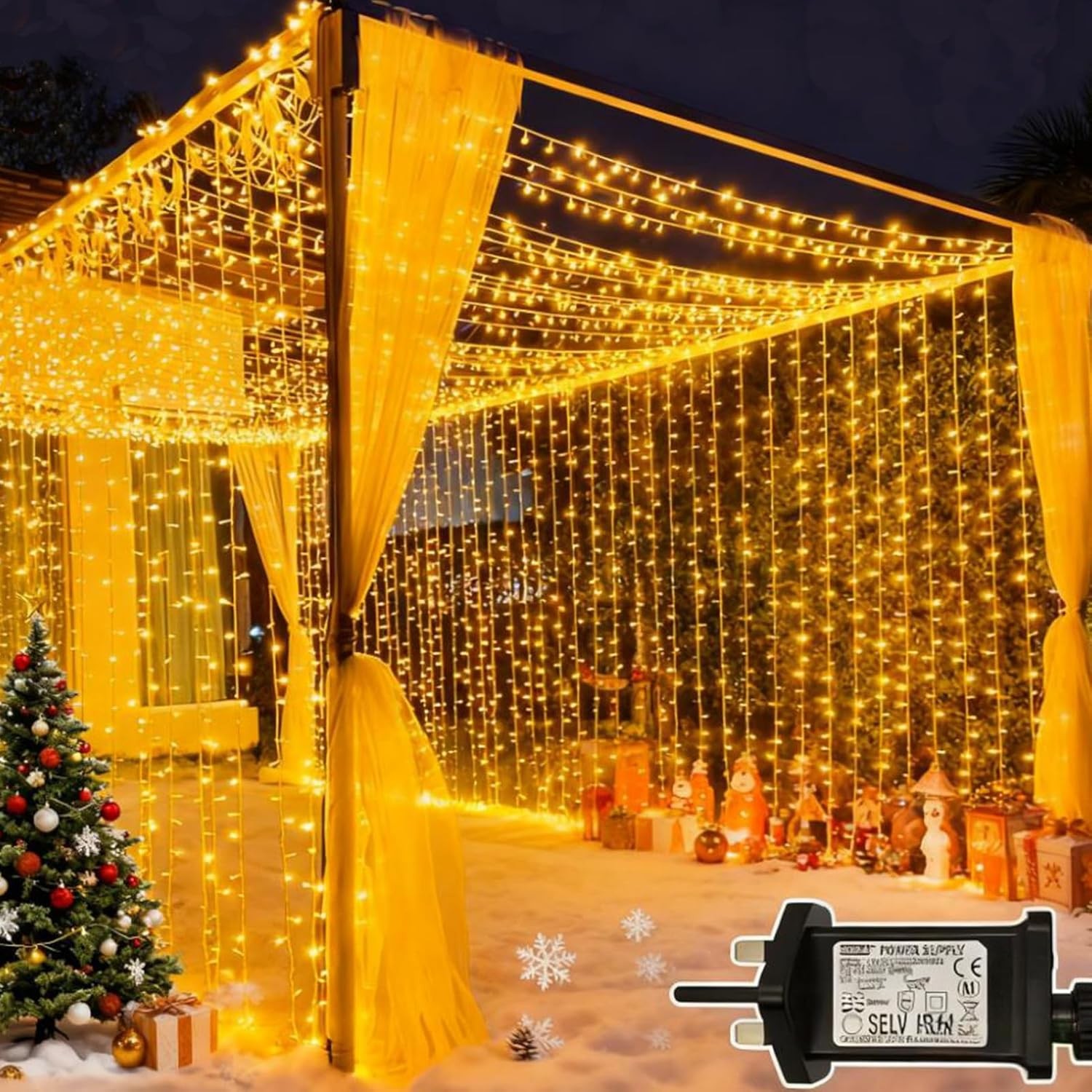 Joycome Curtain Lights Outdoor, 6mx3m 600 LED Curtain Fairy Lights Plug in, 8 Modes/Timer/Connectable Waterfall Fairy Light, Waterproof String Light for Garden Gazebo Wall Ceiling Party (Warm White)