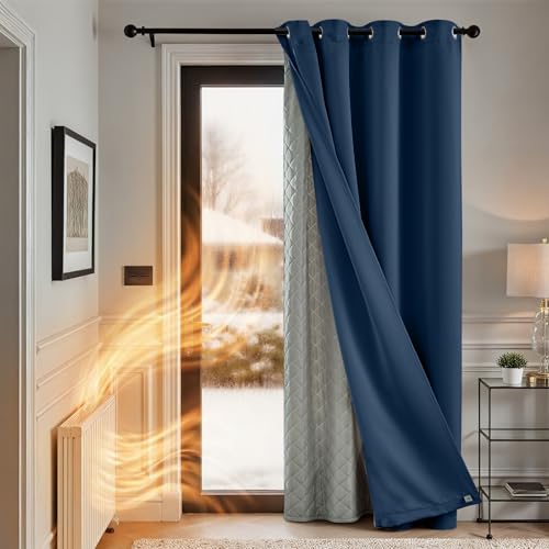 TOPICK Thermal Full Blackout Door Curtains with Removable Insulating Layer, Bedroom Thermal Thick Microfiber Lining Curtain 84 Inch Drop, Living Room Soundproof Drape, W52xL84 Inch, 1 Panel, Navy Blue