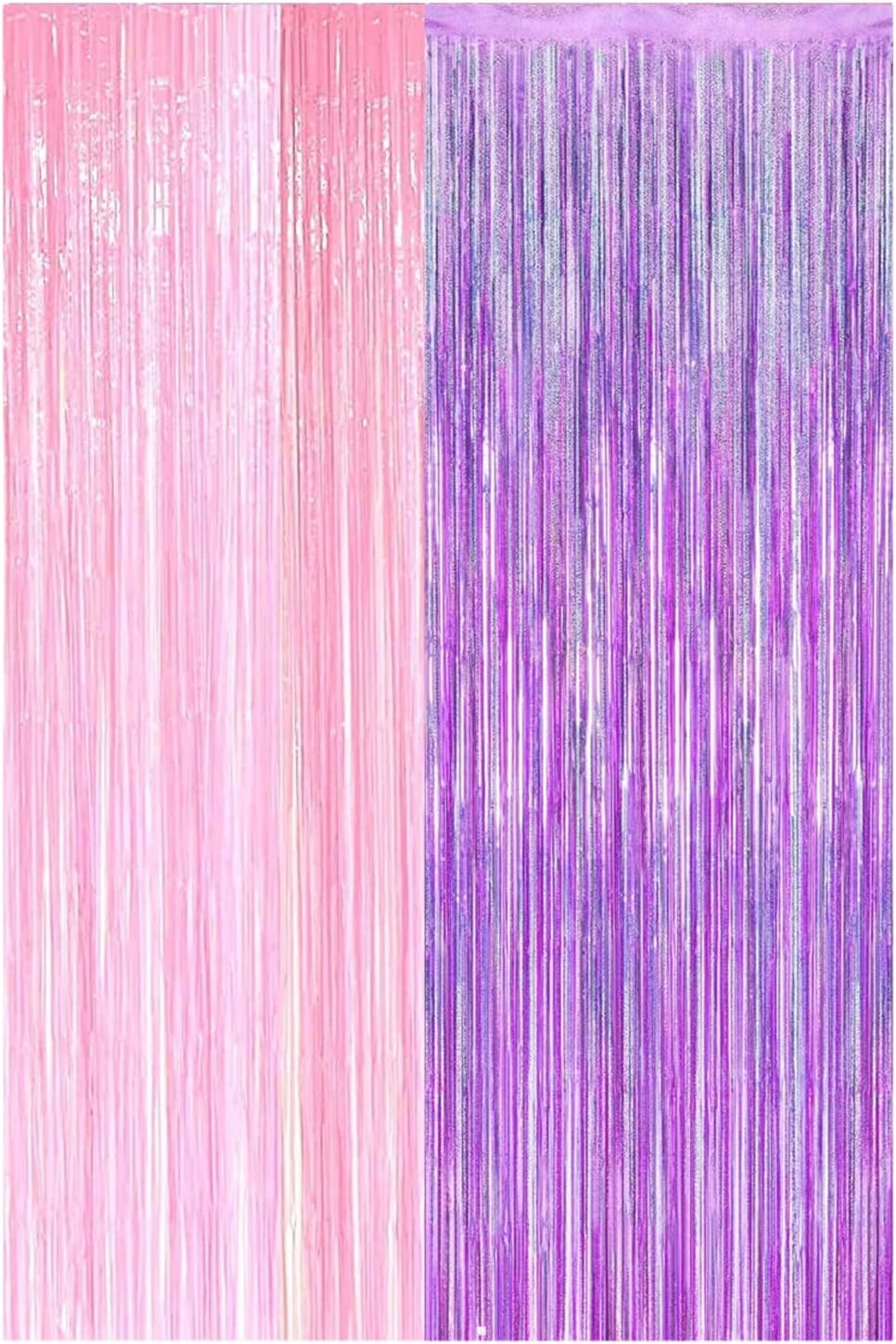 Alaoo 2PCS 3.28 x 6.56 Tinsel Curtain, Aluminum Foil Fringe Curtain, Hanging Door Streamers, Party Streamers Curtains Decorations for Birthday Party Wedding Graduation Christmas Photo Backdrop, Pink