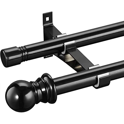 Harrms Double Curtain Pole, Curtain Poles for Eyelet Curtains, Black Curtain Pol