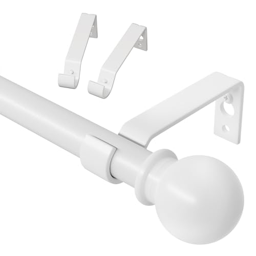 Curtain Poles, White Curtain Pole for Eyelet Curtains 80 to 122 cm, Small Voile Curtain Rod for Door with Brackets, 16mm Diameter Thin Metal Adjustable Curtain Pole